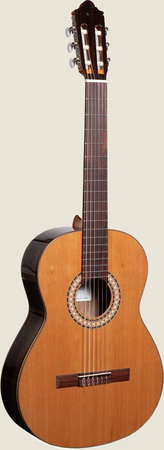 Excel·lent guitarra a un preu assequible, còmode i lleugera. La tapa, de cedre o avet massís, està cuidadosament seleccionada. El fons i els costats són de ciricote. Incorpora filets de fusta de caoba. Amb acabats de vernís brillant. Un so clàssic, càlid i amb volum.