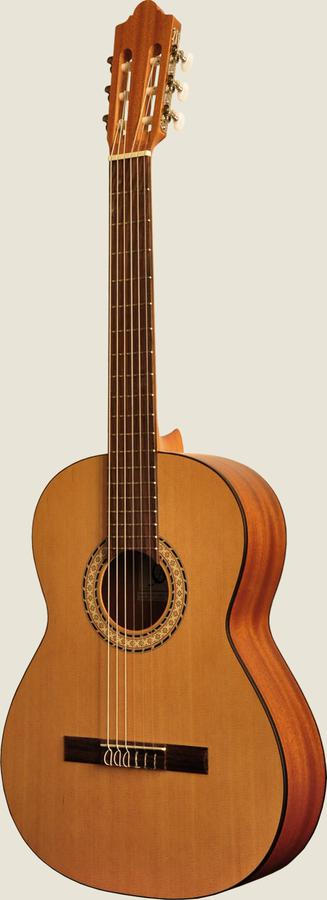 Perfect model for beginners because it is very light and comfortable. The solid cedar or spruce top gives a warm and powerful sound. Mat varnish finish which keeps the natural tone of the wood.