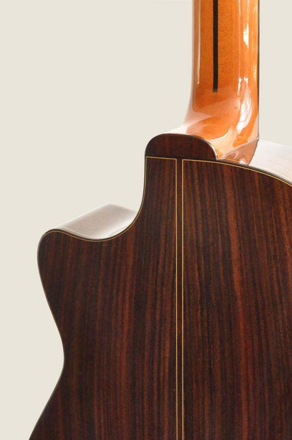 Elegant concert guitar made from 1st pick of the 1st class soundboards, back and sides. The tone is steady and clear in every register and perfectly balanced, with great attack.