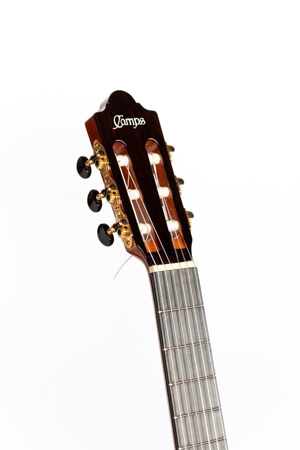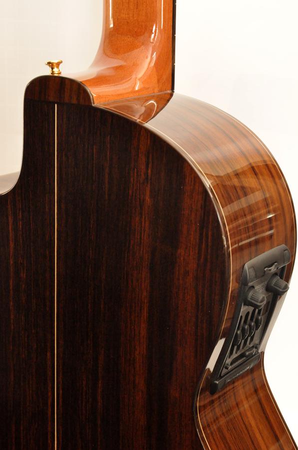 This guitar is addressed to restless players. It is designed to provide a wonderful playability. It is achieved because the action of the strings is adjusted in order to facilitate the action, and the neck is made in such a way that the left hand slides softly. Moreover, it contains an adjustable truss rod inside the neck, which has a double effect. On one hand bending problems are avoided, and on the other hand it is possible to build narrower necks, getting thus the desirable ergonomics - so that the left hand plays effortlessly. An ease playability at treble fret, thanks to cut-away aesthetics.
