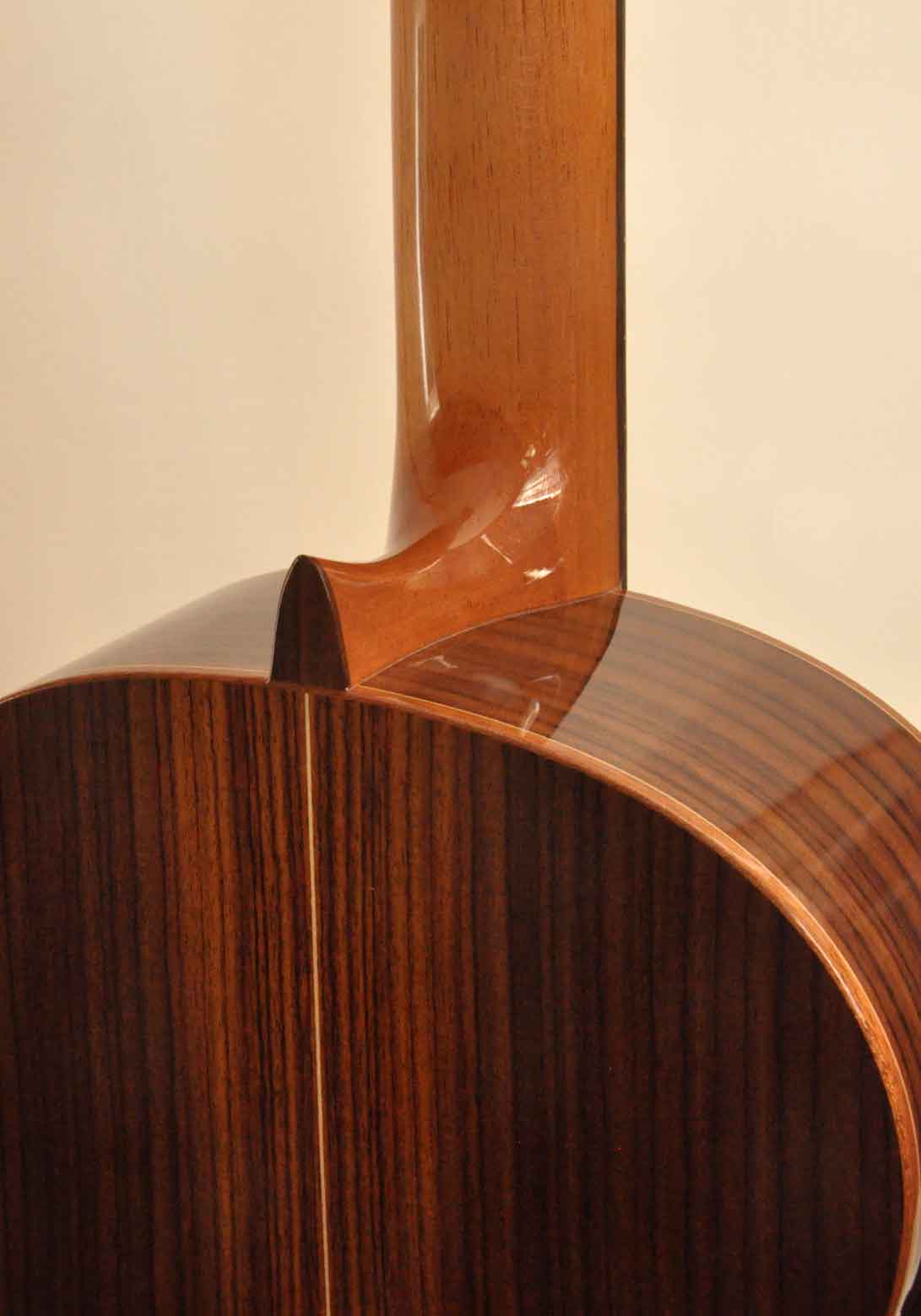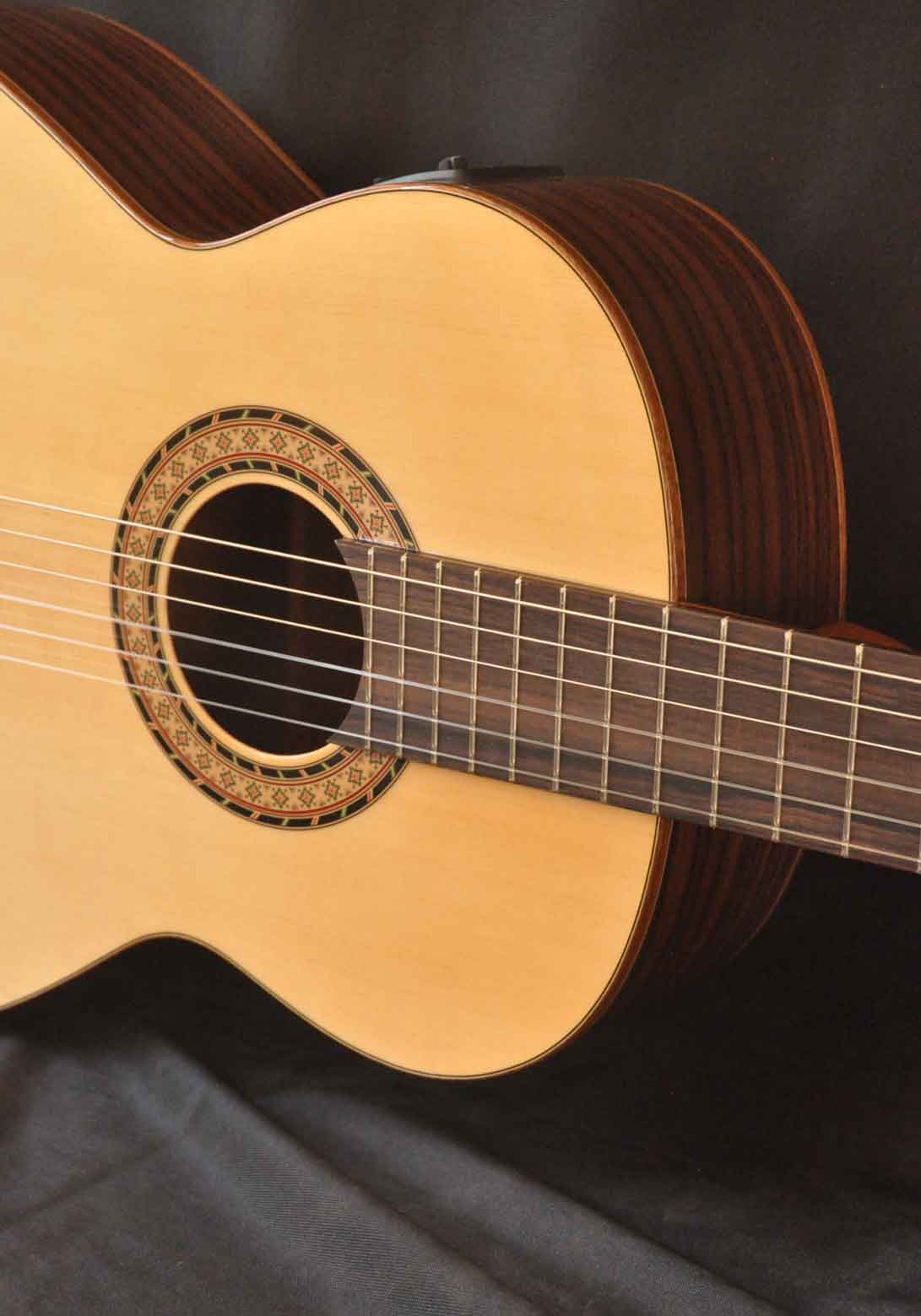 Excellent guitar for a reasonable price, comfortable and light. The solid top is thoroughly selected. Back and sides are made from Ziricote. It also has a mahogany binding. The sound is classical, warm and penetrating.