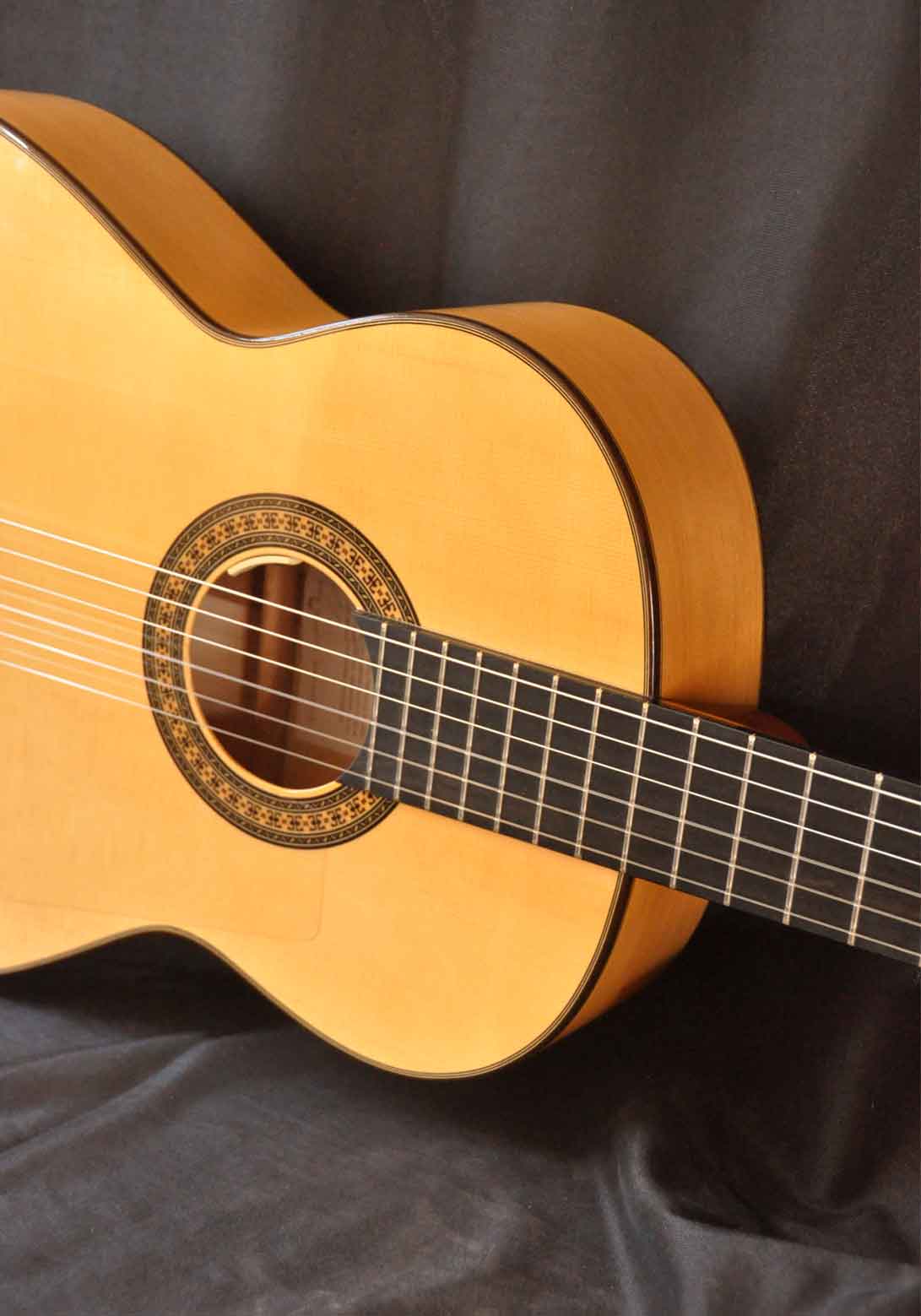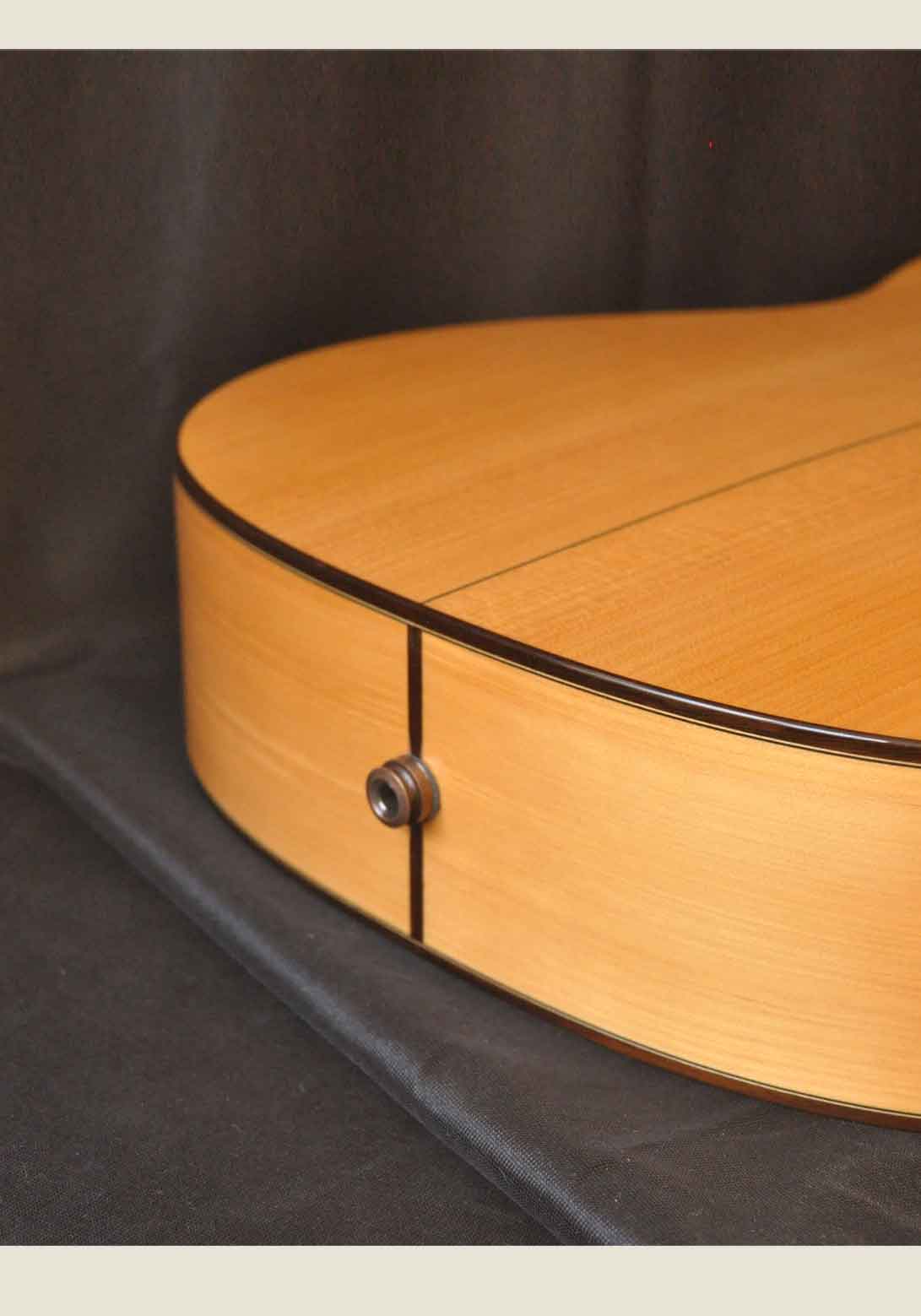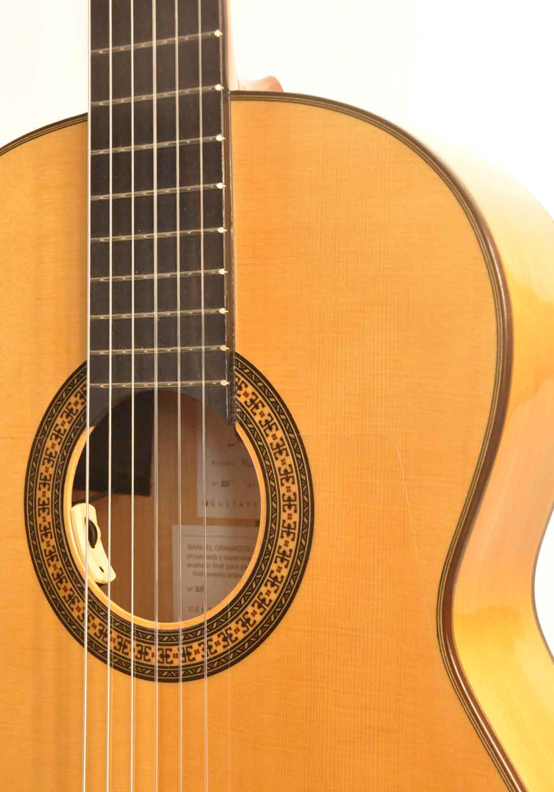This guitar is the equivalent Primera Flamenco model certified by Manuel Granados plus amplified with L.R.BAGGS electronics. By using this type of electronics the resulting sound is the most faithful to the natural sound of the instrument.